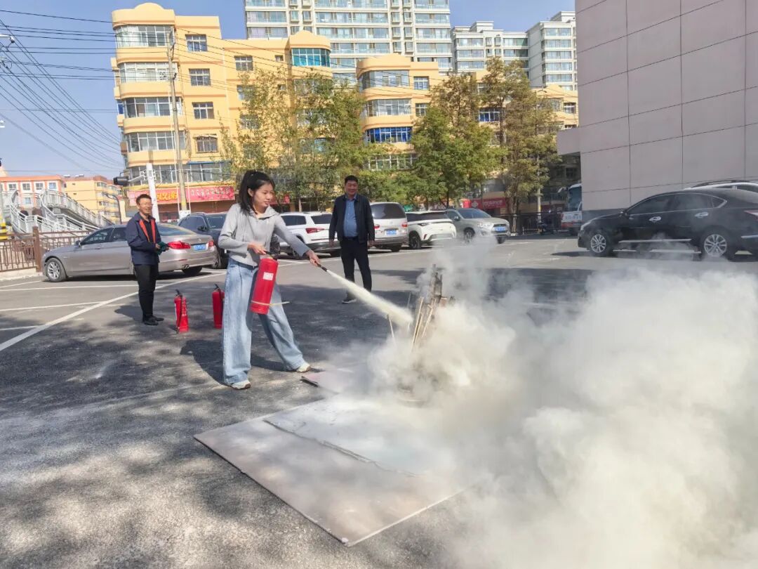 技能实操,提升器材运用本领。演练结束后,进入灭火器使用教学环节。在空旷场地设置模拟火种,教官向职工们详细讲述了灭火器的正确操作方法和注意事项,并亲自示范灭火器扑灭模拟火源的操作流程,随后,参训职工轮番上阵,按照“一提、二拔、三握、四压”的操作顺序,手持灭火器对着火点根部由远及近进行扫射灭火,通过实际操作,职工们切实熟练掌握了灭火器使用方法,有效提高了扑救初起火灾的能力。